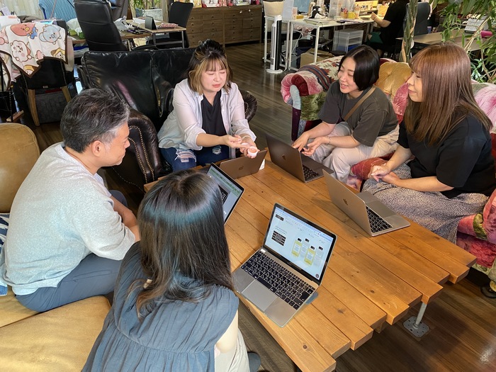 商品化を目指す提案はもちろん、容器や既存商品の改善など、内容は自由で、さまざまな意見を出し合います。